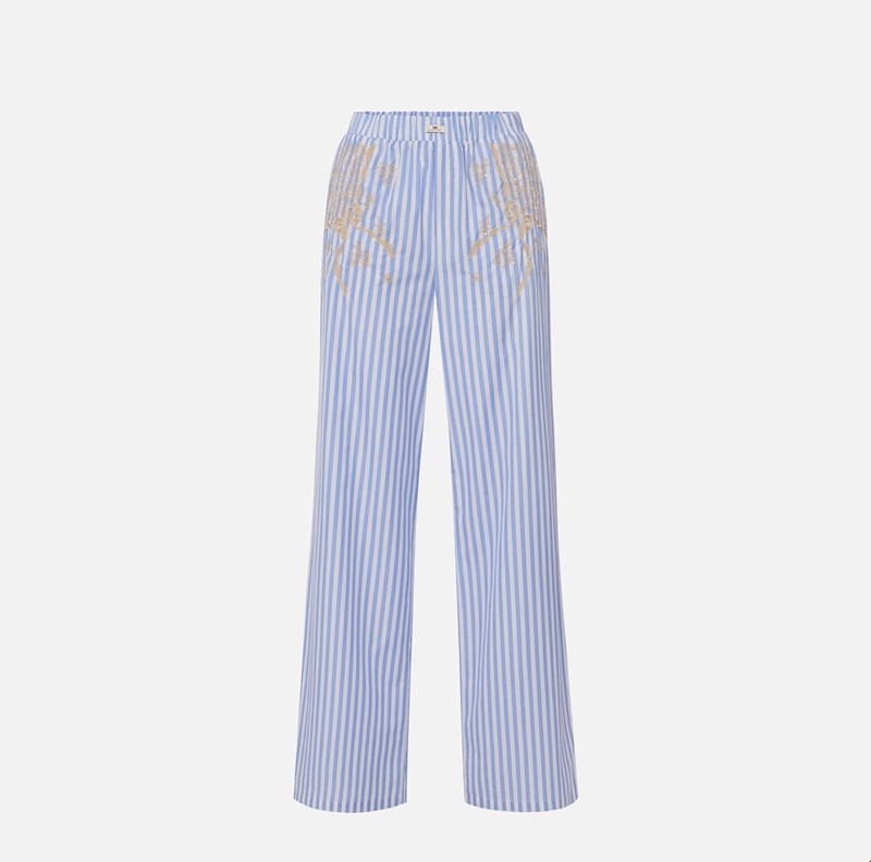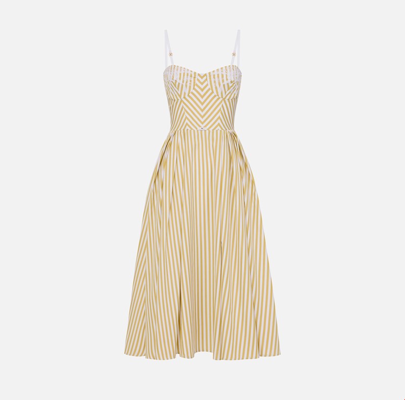 Ρίγες, το χαρακτηριστικό στοιχείο της συλλογής, είναι υφασμένες μαζί με εκλεπτυσμένες, κεντημένες στο χέρι λεπτομέρειες, αληθινά κοσμήματα που κάνουν κάθε δημιουργία μοναδική. Λεπτά σχέδια broderie San Gallo προσθέτουν μια ρομαντική και κομψή πινελιά, ενώ οι φυσικές Ψάθινε λεπτομέρειες ανακαλούν την αυθεντική απλότητα των καλοκαιριών της Μεσογείου.