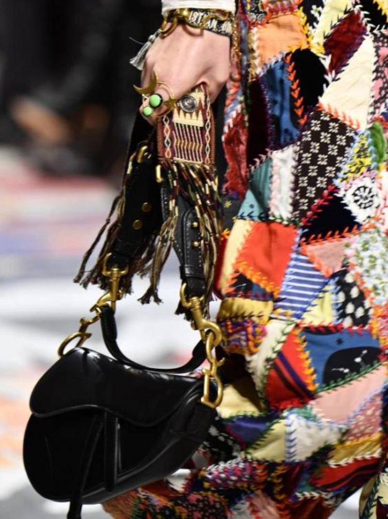 Μαζί της και μία από τις πιο αγαπημένες τσάντες της προηγούμενης δεκαετίας, η saddle bag του γαλλικού οίκου Dior, η οποία είναι ακριβώς αυτό που λέει το όνομα της. Μία στενή, στιλάτη τσάντα, γεμάτη με το logo του Dior, σε σχήμα σέλας.