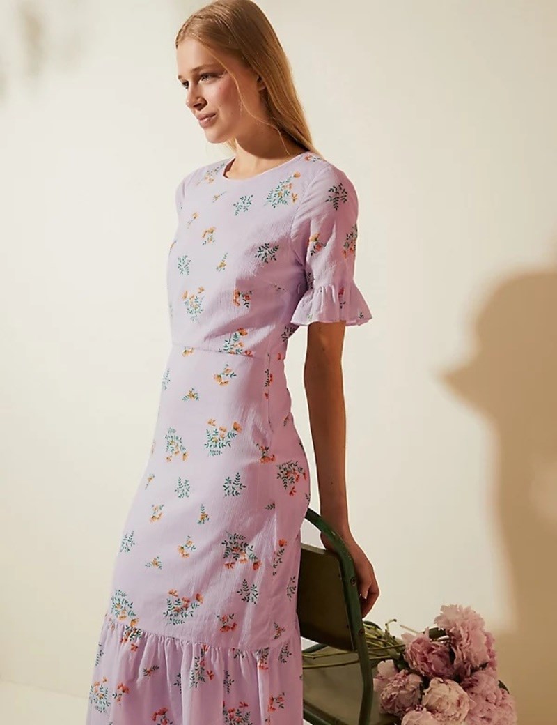 Μίντι φλοράλ φόρεμα με φραμπαλά στα μανίκια από 100% βαμβάκι - Marks & Spencer