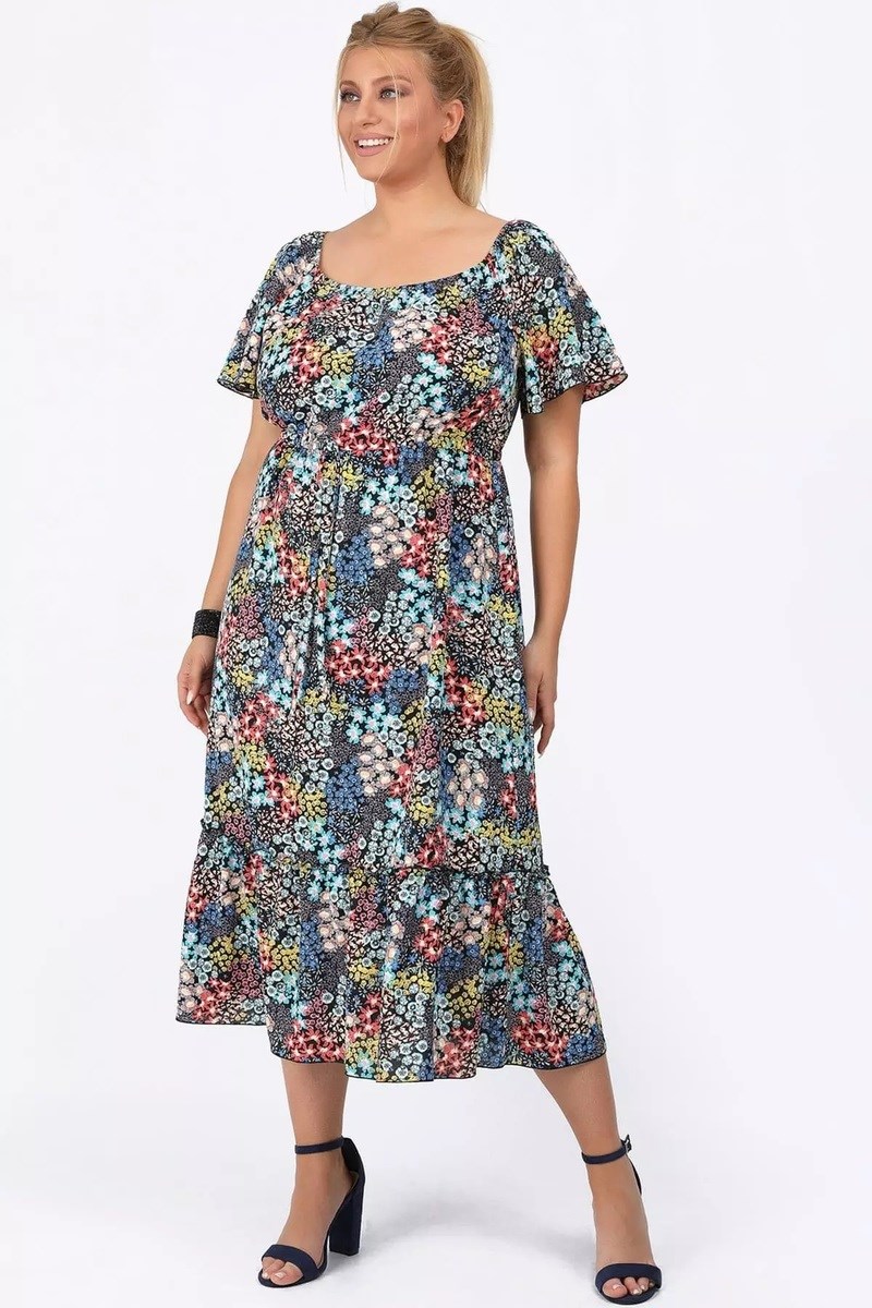 Midi floral off-shoulder φόρεμα με βολάν - Parabita