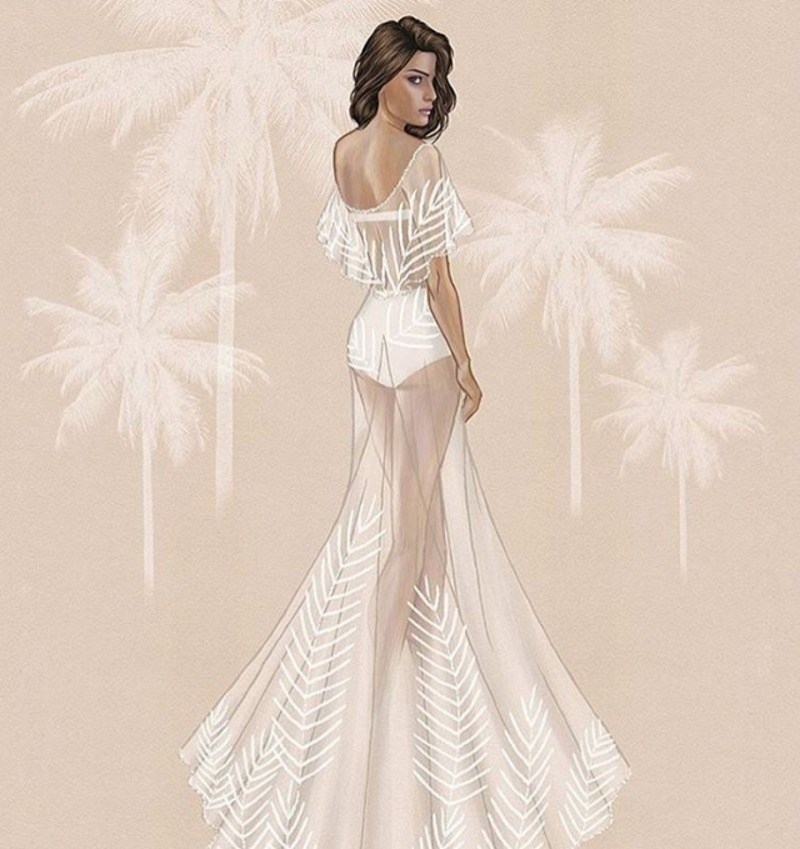 Φυσικά, το supermodel μεταφέρθηκε σε σημείο όπου μπόρεσε να αναδείξει το αιθέριο φόρεμα όσο καλύτερα μπορούσε. Μένοντας πιστή στις ρίζες της η Fontana, επέλεξε το φόρεμα να σχεδιαστεί από το βραζιλιάνικο brand, Agua de Coco. Η βραζιλιάνικη Vogue ανάρτησε ένα σκίτσο του φορέματος χθες, εξηγώντας ότι το φόρεμα ήταν custom made και ότι αυτή ήταν η πρώτη προσπάθεια του Agua de Coco σε νυφικό. (Κάτι μας λέει ότι δεν θα είναι η τελευταία). Για να αντισταθμίσει τη λεπτότητα του φορέματος, η Fontana φόρεσε ένα απλό στράπλες λευκό σουτιέν και υψηλόμεσο εσώρουχο.