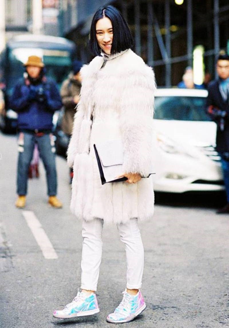 Θα το ταιριάξουμε με το κόκκινο της Βουργουνδίας, ένα από τα πιο εντυπωσιακά χρώματα της σεζόν, θα ενδώσουμε στην πολυτέλεια ενός λευκού γούνινου κομματιού αλλά και στη διαχρονικά casual διάθεση των λευκών sneakers, που ταιριάζουν με τα πάντα και πάντα. Θα το χρησιμοποιήσουμε ως ουδέτερο καμβά, αναδεικνύοντας ενδιαφέρουσες υφές και αρχιτεκτονικές λεπτομέρειες.