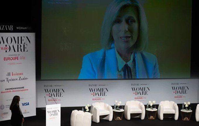 Η Ελένη Πατεράκη στο βήμα της ημερίδας "Women Who Dare: Η Ισότητα ως Τρόπος Ζωής".