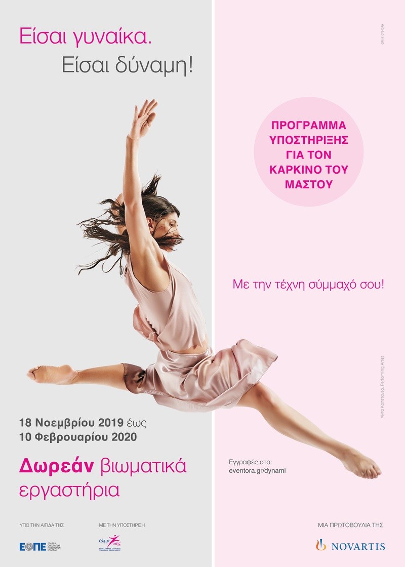 Φέτος, το πρόγραμμα «Είσαι γυναίκα. Είσαι δύναμη!» παρουσιάζεται ακόμα πιο εξελιγμένο καθώς από τις 18 Νοεμβρίου 2019 έως τις 10 Φεβρουαρίου 2020, προσφέρονται δωρεάν βιωματικά εργαστήρια εκφραστικών τεχνών, σε ολοκληρωμένους κύκλους, τα οποία απευθύνονται σε γυναίκες που νοσούν ή έχουν νοσήσει από καρκίνο του μαστού.