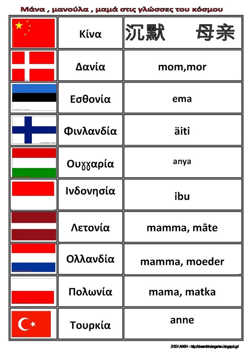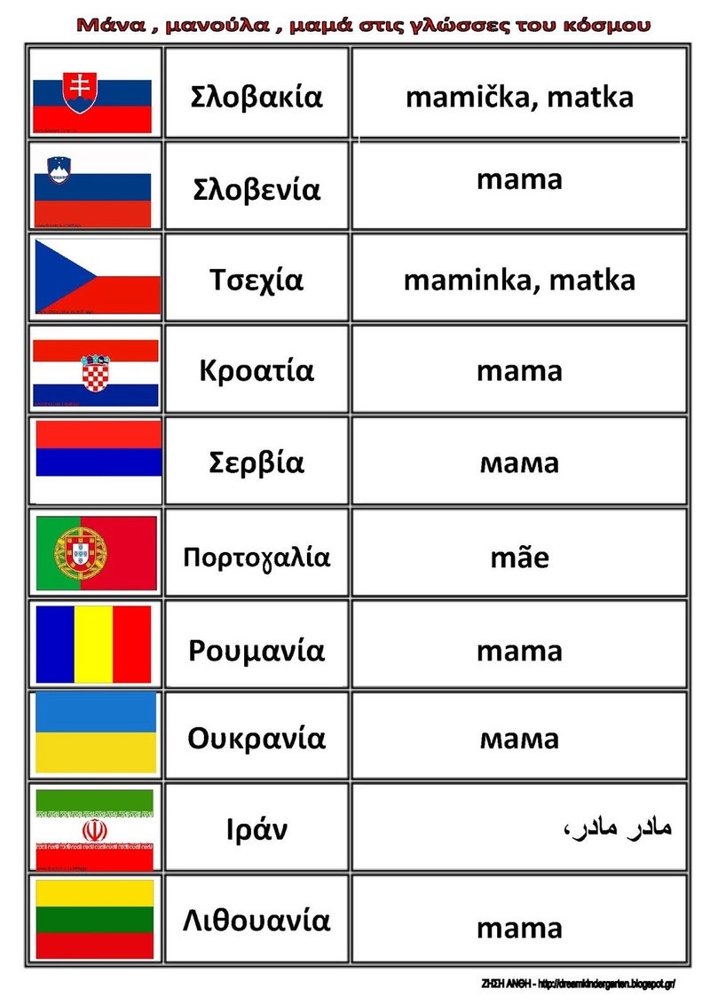 Ελληνικά : μαμά , μητέρα , μάνα , μανούλα