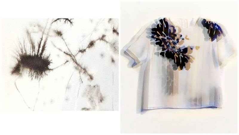 Η Θεοδώρα μπλέκει όχι μόνο διαφορετικές υφές υφασμάτων αλλά και διαφορετικές τεχνικές. Εδώ παίζει με την τεχνική του stencil.