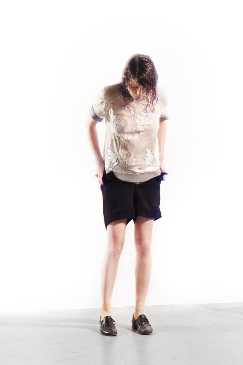 Το παλιό σεμέν της γιαγιάς, με μικρές παρεμβάσεις από δέρμα, μεταμορφώθηκε σε one of a kind τοπ, που απέχει παρασάγγας από το πολυφορεμένο ρομαντικό vintage. Κι όμως, παρά τα γραφόμενα, ελάχιστα μιλήσαμε με τη Θεοδώρα για μόδα. Είπαμε κάτι λίγα για τον κοινό μας έρωτα, τον οίκο Chanel, για τη Λουκία που φτιάχνει το ρούχο που έχει ονειρευτεί παίζοντας με το ύφασμα πάνω στην κούκλα, για τους νέους Έλληνες σχεδιαστές... Κυρίως όμως μου μίλησε για την αγάπη της για την ιαπωνική τέχνη, για τα ταξίδια που έχει κάνει ή αυτά που ονειρεύεται να κάνει, για τους καλύτερους έρωτες που είναι αυτοί που δεν ήρθαν, για τις σύγχρονες Ελληνίδες που -τι κρίμα- έχουν μια εμμονή να δείχνουν όλο και περισσότερη σάρκα. Είπαμε όλα αυτά για να καταλήξουμε και οι δύο πως η ίδια η ζωή είναι η μόδα, πως για να ζήσεις τη μόδα πρέπει πρώτα να ζεις τη ζωή. Και πως ο κάθε σχεδιαστής αποτυπώνει μες στις δημιουργίες του ακριβώς αυτό: τον τρόπο που βλέπει τη ζωή. Προσωπικά, πάντως, μου αρέσει πολύ ο τρόπος που βλέπουν τη ζωή τα Meuf.