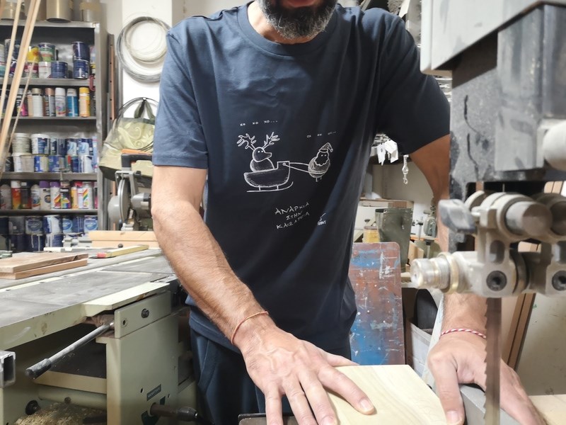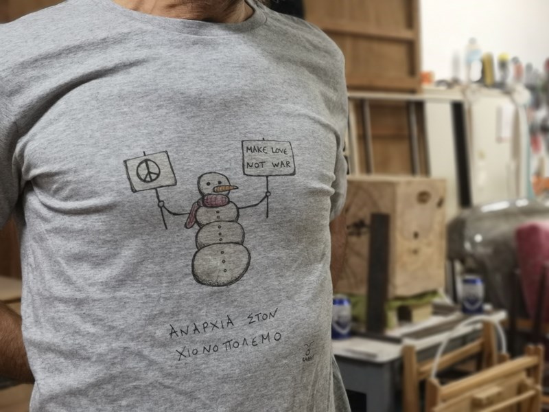 «Η Αναρχία ως σειρά ξεκίνησε πριν από αρκετά χρόνια, το 2012, όταν ζούσα στην Ολλανδία. Εκεί λόγω της γενικότερης φάσης στην οποία ήμουν, είχα το χρόνο και την ευκαιρία να περνάω αρκετές ώρες μόνος και να ζωγραφίζω. Η ζωγραφική τότε είχε ξαναγίνει κάτι πολύ προσωπικό για μένα, ένας τρόπος να περνάω εγώ καλά. Να γελάω ο ίδιος με αυτά που κάνω και ταυτόχρονα να τα μοιράζομαι στο ίντερνετ, οπότε με αυτό τον τρόπο να έρχομαι και σε επαφή με κόσμο. Μέσα στους διάφορους πειραματισμούς που έκανα τότε, ξεκίνησα να κάνω κάποιες παραλλαγές του σκίτσου Anarchy in the UK, του Ισλανδού σκιτσογράφου Dagsson. Κάπως έτσι ξεκίνησε αυτή η σειρά, και συνεχίζει ακόμα με διάφορους τρόπους. Βρίσκω την απλότητά της και την επανάληψη πολύ δυνατή. Είναι πολύ ενδιαφέρον να περιορίσεις τα μέσα σου. Δηλαδή, μόνο δύο σκίτσα, δύο ατάκες και ένας τίτλος φτιαγμένος με τελείως απλά υλικά. Νοιώθω ότι όταν περιορίζονται τα μέσα, δίνεται παραπάνω έμφαση στο μήνυμα, στο περιεχόμενο. Με αυτό τον τρόπο η σειρά αυτή έχει καταλήξει να περιέχει πάνω από 100 σκίτσα και να συνεχίζει απτόητη. Γιατί πάντα κάτι καινούριο υπάρχει να ειπωθεί».