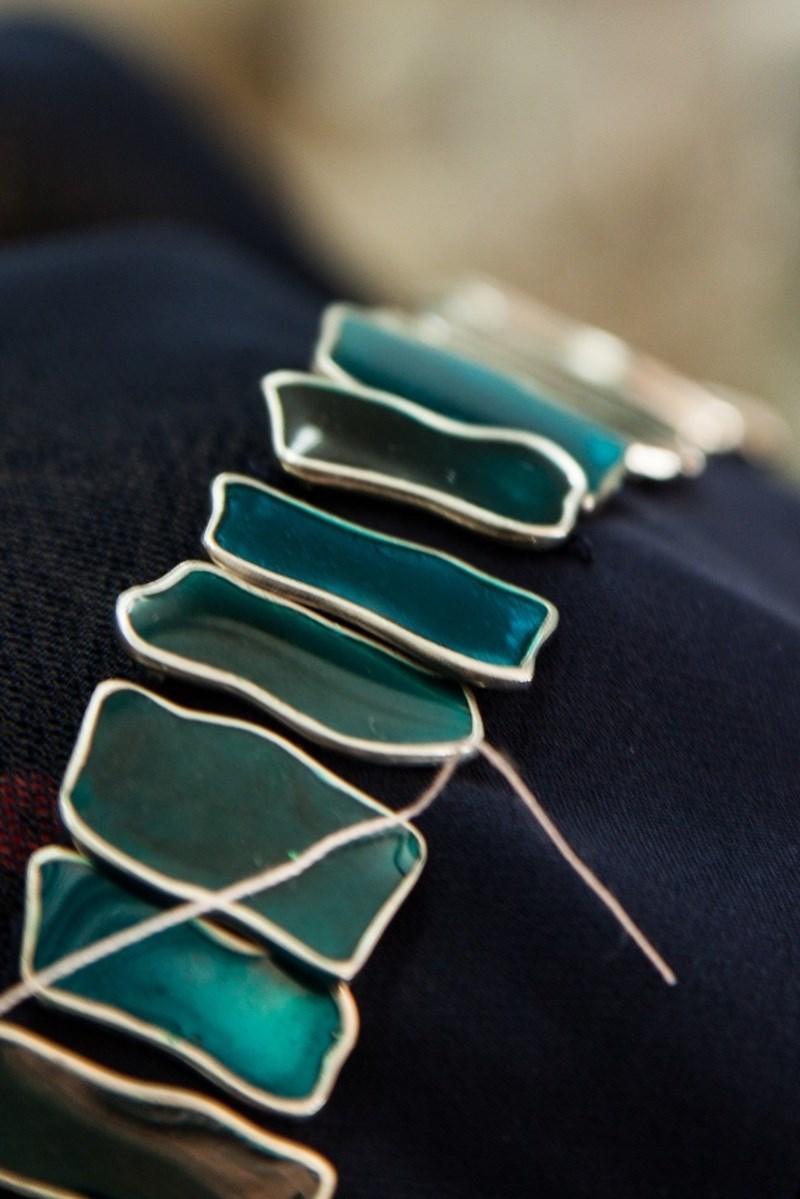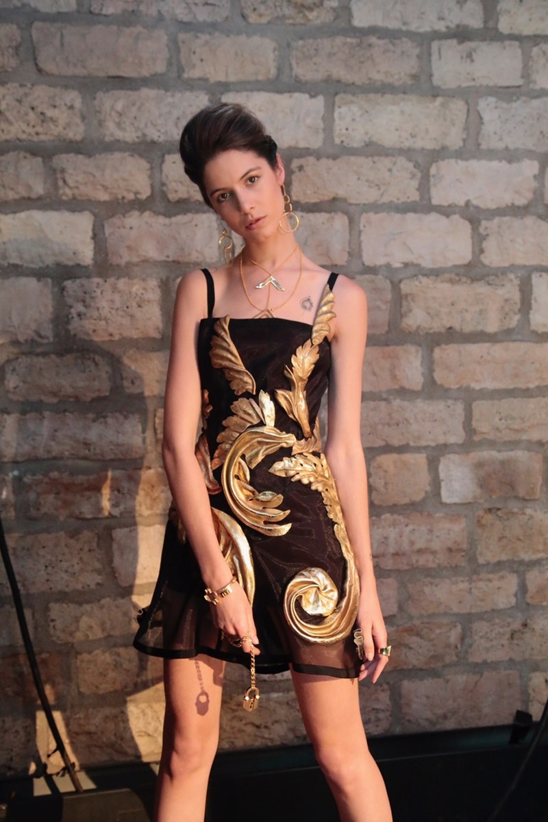 »Σ' αυτή την κολεξιόν συνεργάστηκα με την Anapnoe, με την Φώφη και Μάρσα Δημοπούλου, που σχεδίασαν για την collection Prisma μια ειδική σειρά κοσμημάτων με κεντρικό κομμάτι το κλειδί -με πολύτιμους λίθους σε πολλές εκδοχές-, που ξεκλειδώνει τον σουρεάλ κόσμο της συλλογής. Επίσης, εμπνευσμένες από τα σμάλτα, σχεδίασαν αρκετά γεωμετρικά σχήματα σε σκουλαρίκια. Κομμάτια από την υπόλοιπη σειρά, όπως τα τεράστια χρυσά σκουλαρίκια βρίσκονται ήδη στα 15 καλύτερα της Εβδομάδας Μόδας σε δημοσιεύσεις ανά τον πλανήτη. Παράλληλα, θυμίσαμε την ελληνική γούνα από την Καστοριά με μια συνεργασία με την εταιρία Impel, του Ιορδάνη Μιχαηλίδη. Κάναμε κάποια πολύ ωραία clutch με γούνα και επένδυσα αρκετά σημεία σε τζάκετ και φορέματα. Ήταν πολύ εντυπωσιακά.