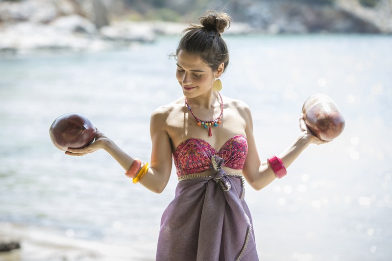 Τα παρεό μας είναι 100% MADE IN GREECE, κατασκευασμένα από υψηλής ποιότητας βαμβακερά υφάσματα: μαλακή γάζα, λεπτό ζέρσεϊ ή παραδοσιακό σεντονόπανο, όπως αυτό που βρίσκουμε συχνά στα μικρά ελληνικά χωριά ή νησιά. Οι τρέσες κατασκευάζονται σε περιορισμένα χρώματα και τεμάχια σε μια μικρή οικογενειακή βιοτεχνία. Το ύφος τους θυμίζει σεμεδάκια από βελονάκι. Τόνοι απαλοί, χρώματα της γης και της ελληνικής φύσης, συμπληρώνονται από έντονες, φωτεινές αποχρώσεις και λεπτομέρειες, για τη δημιουργία μιας πλήρους συλλογής με αναφορά στο ελληνικό καλοκαίρι.