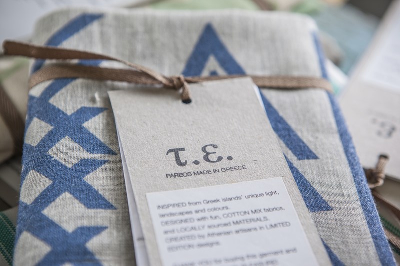 Ναι, το τ.ε. προκύπτει από τα αρχικά των ονομάτων μας: Τάνια Δημητρακοπούλου (τ) και Ελένη Πραμπλάν (ε). Η ιδέα ήρθε μετά από ένα ταξίδι της Ελένης στην Ταΐτή, όπου τα παρεό αποτελούν καθημερινό στοιχείο της μόδας. Τα παρεό είναι μέρος και της ελληνικής κουλτούρας της παραλίας, και ο στόχος ήταν να δημιουργήσουμε παρεό 100% ελληνικά ως προς την έμπνευση, το σχεδιασμό τους, τα υφάσματα αλλά και την παραγωγή. Περπατώντας στα σοκάκια της Μυκόνου βλέπαμε στα καταστήματα παρεό με χαρακτηριστικά σχέδια από Ινδονησία και άλλα εξωτικά μέρη, σκεφτήκαμε πόσο ωραίο θα ήταν ένας ξένος επισκέπτης να μπορέσει να φέρει πίσω από τις διακοπές του ένα παρεό με τον αέρα των ελληνικών νησιών.