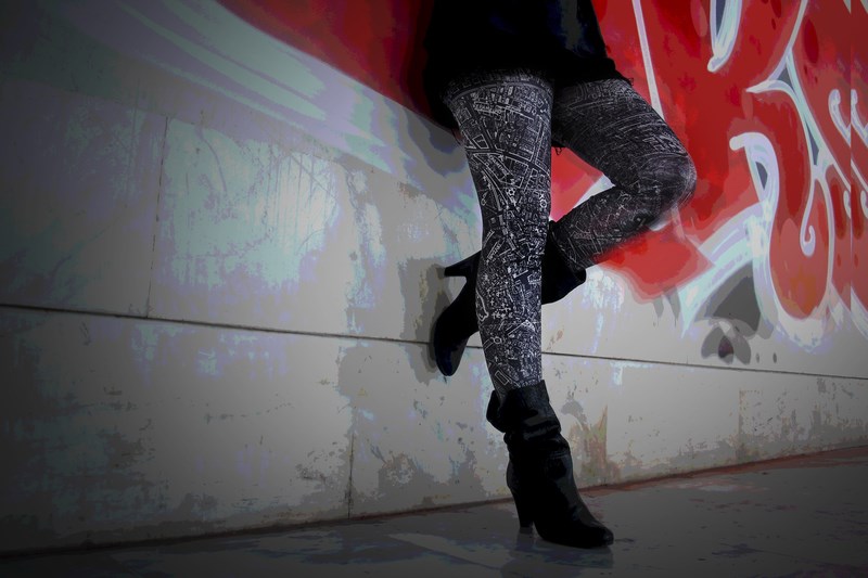 Γεωγραφικά τμήματα της χώρας ή ολόκληρα πολεοδομικά σχέδια ελληνικών πόλεων αποτυπώνονται πάνω στα λεπτά πολυεστερικά υφάσματα (από τα οποία είναι κατασκευασμένες οι τσάντες) καθώς και στο τελευταίο κομμάτι της συλλογής της, που δεν είναι τσάντα αλλά ένα κολάν, ονόματι thegreektights. Με μια πρώτη ματιά, θυμίζει σχέδιο γκραφίτι, αλλά αν το ψάξεις λίγο καλύτερα, θα διαπιστώσεις ότι πρόκειται για τον πολεοδομικό χάρτη της Αθήνας.