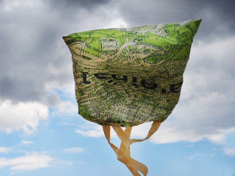 Οι τσάντες της, τύπου tote bags, απεικονίζουν ελληνικούς χάρτες, που παραπέμπουν απευθείας στις σχολικές αίθουσες των παιδικών μας χρόνων. «Σκέφτηκα να βρω έναν τρόπο να μεταφέρω αυτό το κομμάτι από το σχολείο στον δρόμο. Για διάφορους λόγους. Ήταν για παράδειγμα η νοσταλγική διάθεση που σου προκαλεί βλέποντάς τον. Ο χάρτης είναι ένα αντικείμενο φορτωμένο με μνήμες. Η ιδέα και η ανάγκη να υλοποιηθεί ήρθε τότε που κατάλαβα κι εγώ πια για τα καλά, ότι τα πράγματα αλλάζουν και ότι ο τόπος πρόκειται να περάσει ώρες δύσκολες» θυμάται η Κατερίνα ενώ χαϊδεύει ασυναίσθητα τους χάρτες-τσάντες (ή τις τσάντες-χάρτες;) που απλώνονται μπροστά της.