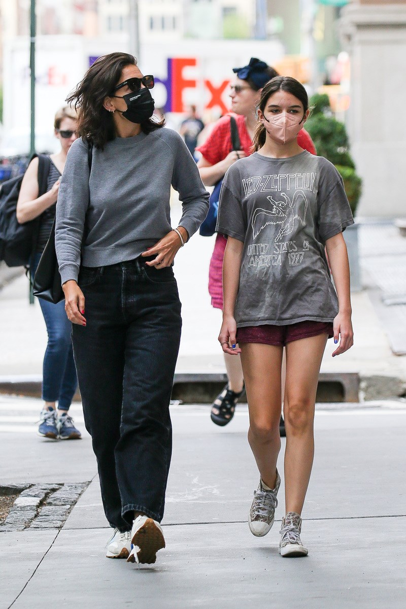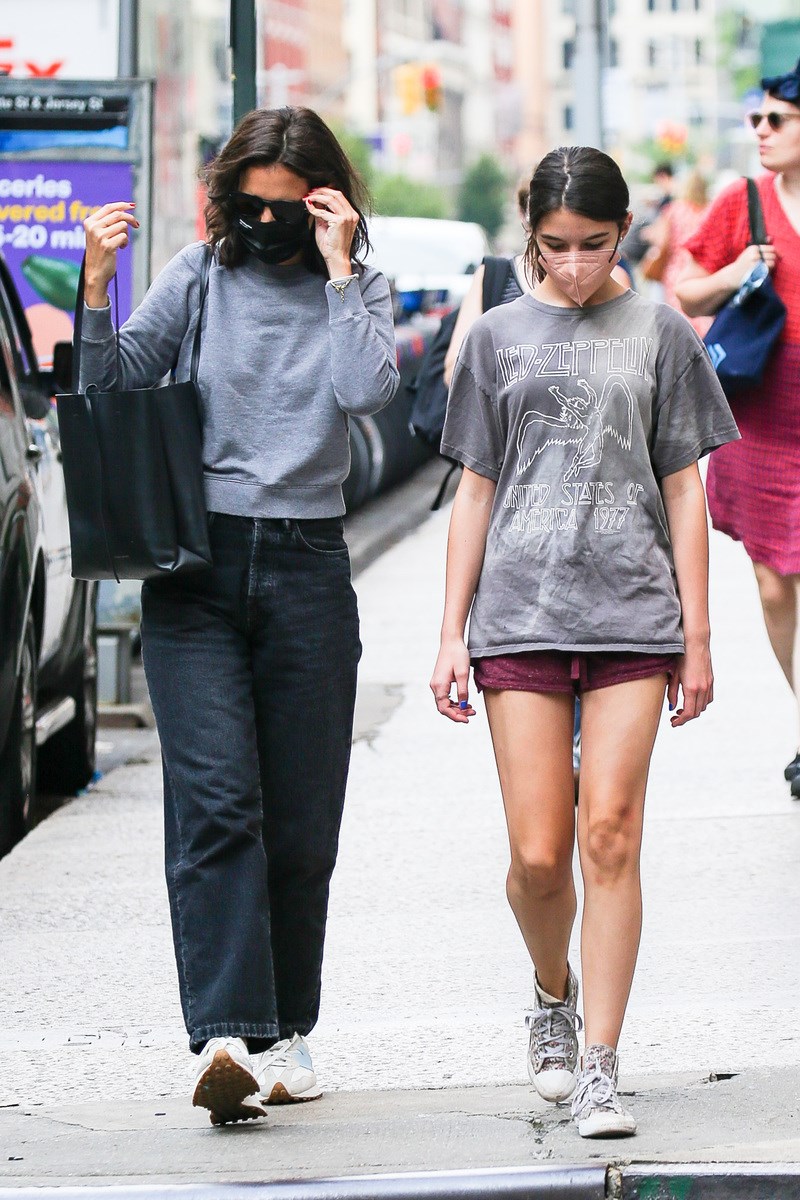 Και μπορεί όταν η Σούρι ήταν μικρό κοριτσάκι να είχε εμφανιστεί ακόμα και με τακούνια και με πανάκριβα φορέματα, ωστόσο πλέον - στην εφηβεία της - ο στιλιστικός της προσανατολισμός είναι πολύ διαφορετικός. Σε πρόσφατες φωτογραφίες η 15χρονη περπατά στους δρόμους του Μεγάλου Μήλου με τη μητέρα της, Κέιτι, ντυμένη σαν οποιοδήποτε κορίτσι της ηλικίας της. Μάλιστα, η Σούρι μοιάζει να αγαπά το πιο χαλαρό, αγορίστικο ντύσιμο, επιλέγοντας ένα μακό σορτσάκι το οποίο την βλέπουμε να φοράει σε διαφορετικές περιστάσεις. Το γκρι, φαρδύ τοπ με το logo των θρυλικών Led Zeppelin δίνει μία ακόμα πιο ροκ διάσταση στο στυλ της. Η αλήθεια είναι, άλλωστη, ότι και η Χολμς αγαπά το casual ντύσιμο και δεν βγάζει ποτέ τα τζιν που έχουν γίνει πια σήμα κατατεθέν της.