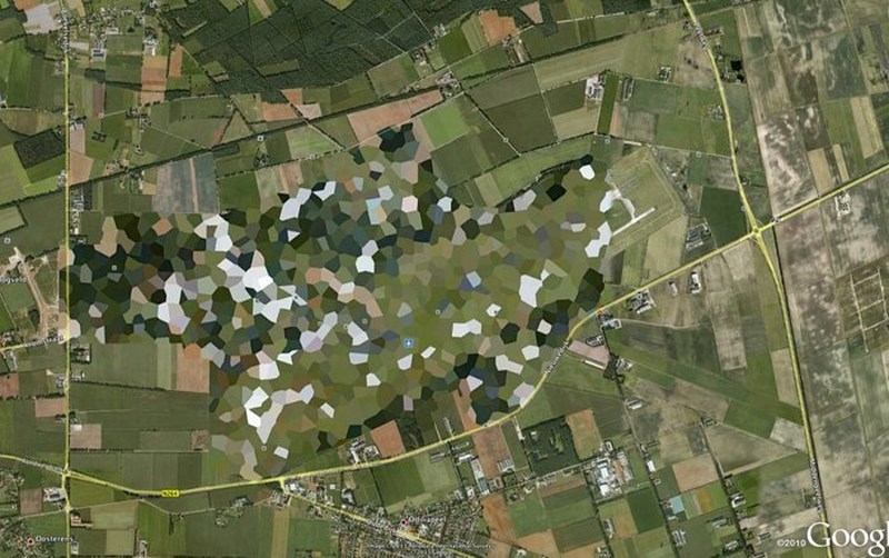 Ενώ δεν είναι θολή στο Google Earth, μια πιο προσεκτική ματιά στην εικόνα δείχνει πώς τα χρώματα δεν ταιριάζουν με το περιβάλλον.