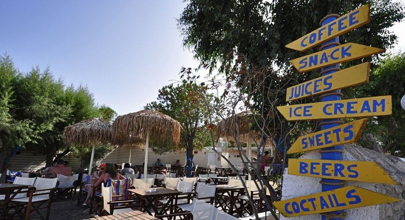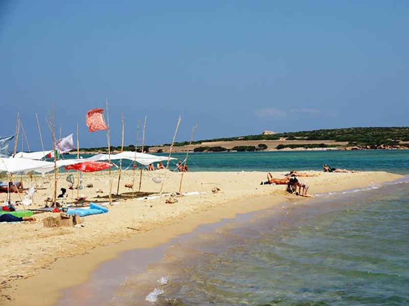 Πανιά και παρεό στερεωμένα σε πασσάλους εδώ κι εκεί, παρέες, ζευγάρια και λίγες οικογένειες, μια κοπέλα που έκανε ταϊλανδέζικο μασάζ, μία μελωδία από κιθάρα που κάποιος έφερε από τη σκηνή του στην παραλία, ένα beach volley. Μια ελαφρώς χίπικη, χαλαρή, καλοκαιρινή ατμόσφαιρα, πλαισιωμένη από γαλάζια νερά και αλμυρίκια. Μπορείς να μείνεις ως το βράδυ και να μη βαρεθείς, αφού διοργανώνονται και συχνά, αυθόρμητα πάρτι.