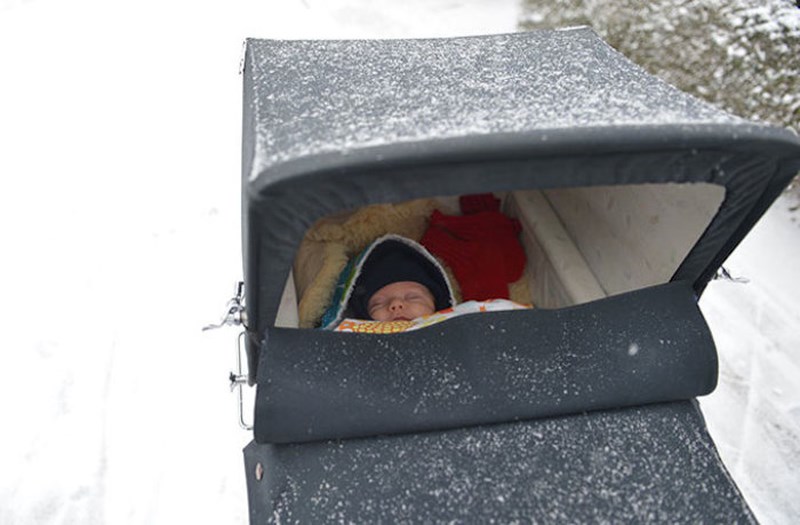Η εικόνα αυτή είναι ιδιαίτερα διαδεδομένη σε Δανία, Σουηδία, Νορβηγία: Δεκάδες παιδικά καροτσάκια «παρακαρισμένα» στα πεζοδρόμια, στο καθένα από τα οποία ένα μωρό κοιμάται ανενόχλητο.