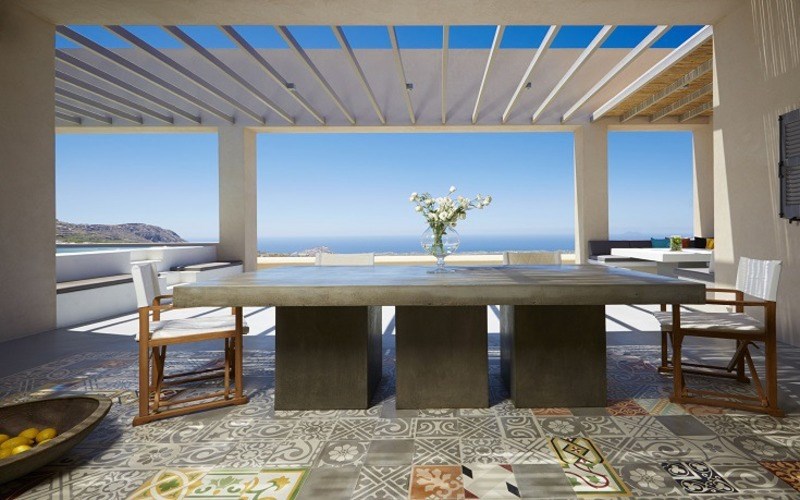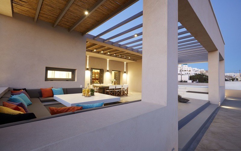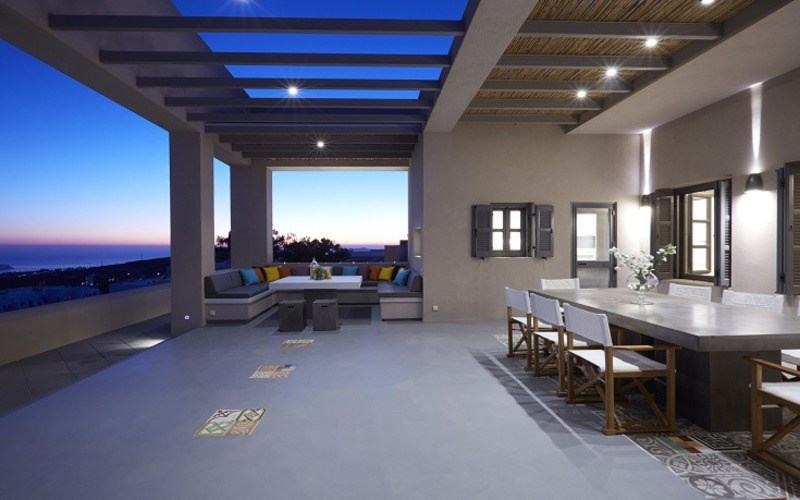 Οι εξωτερικοί χώροι είναι το ίδιο επιβλητικοί διαθέτοντας μια υπέροχη μεγάλη βεράντα με ένα μεγάλο τραπέζι, ξαπλώστρες καθώς και ένα τεράστιο Jacuzzi.