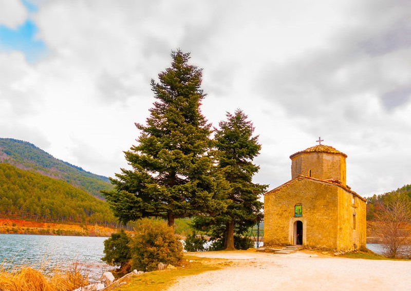«Σήμα κατατεθέν» της λίμνης Δόξας είναι το μικρό ξωκλήσι του Αγίου Φανουρίου (ή Παλαιομονάστηρο, κτίσμα του 14ου αιώνα που εγκαταλείφθηκε τον 17ο αιώνα από μια πλημμύρα της περιοχής) που στέκεται σε μια στενή λωρίδα γης, στην καρδιά της λίμνης και καθρεφτίζεται στα, συνήθως, ακίνητα νερά.